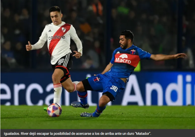 Con este resultado, River se ubica a seis puntos del líder Atlético Tucumán -tienen 26 y 32, respectivamente-, que mañana se enfrentará con Boca en la continuidad de la decimosexta fecha del torneo.