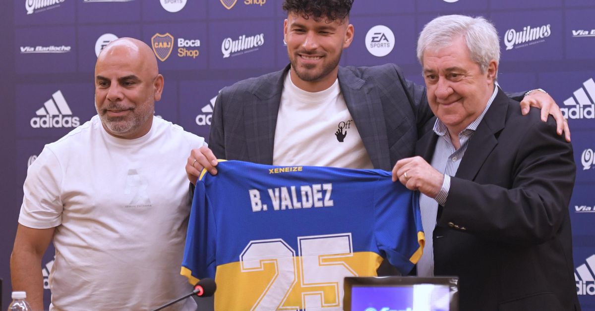 Valdéz, que fue presentado por el propio presidente boquense, Jorge Ameal, quien le trasladó los saludos de bienvenida del vice, Juan Román Riquelme, desde Abu Dhabi, aseguró estar “bien físicamente”