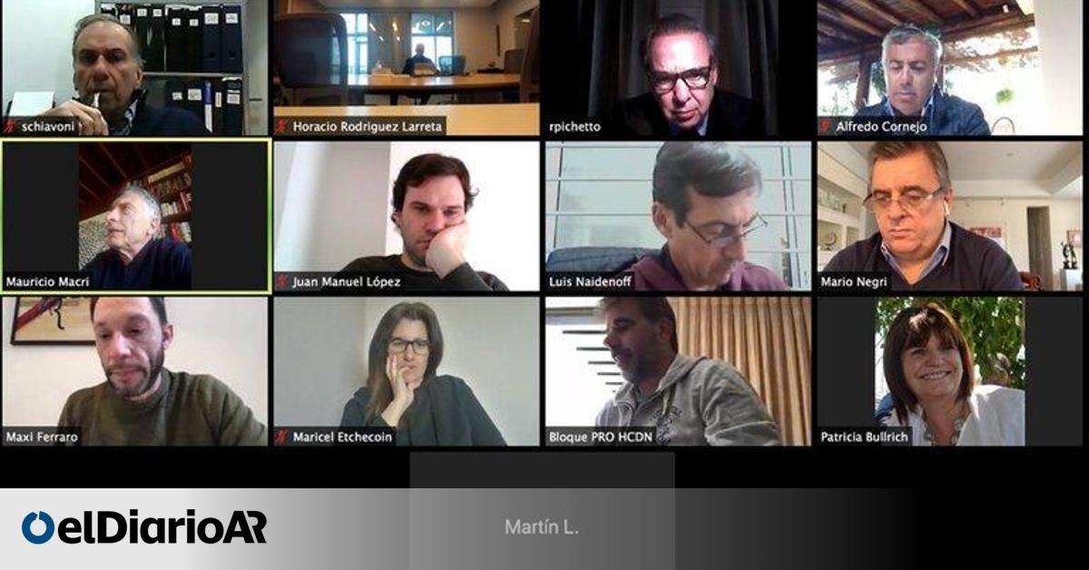 Pasado el mediodía, se reunió la mesa nacional de Juntos por el Cambio por zoom, para concretar una puesta en común. Estuvieron los jefes partidarios Patricia Bullrich (PRO), Gerardo Morales (UCR) y Maximiliano Ferraro (CC), más Mauricio Macri, el gobernador de Mendoza Rodolfo Suárez y Rodríguez Larreta. También, los senadores Alfredo Cornejo, Humberto Schiavoni, Martín Lousteau y Luis Naidenoff, y los diputados Cristian Ritondo, Mario Negri y Juan Manuel López. Hubo tres invitados especiales. Tres economistas: el exministro Hernán Lacunza, el diputado Luciano Laspina y el consultor Eduardo Levi Yeyati.