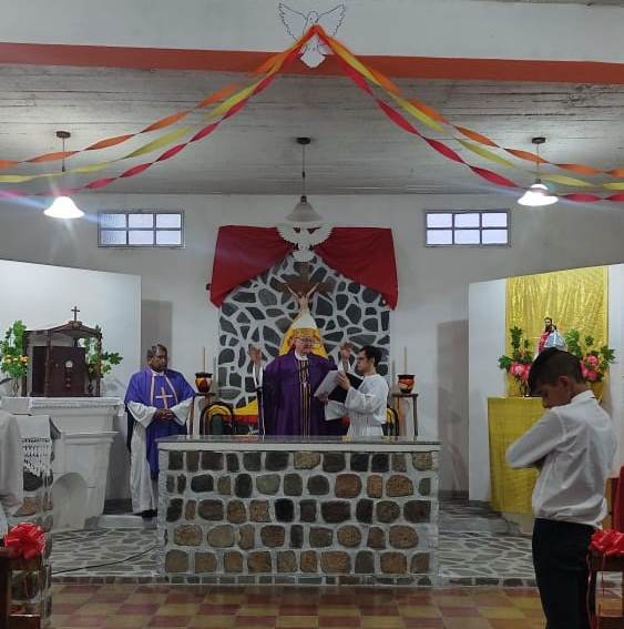 La Santa Misa fue presidida por el obispo diocesano, Mons. Luis Urbanč, y concelebrada por el párroco, presbítero Rogelio Suárez. Participaron autoridades locales y fieles de la zona.
