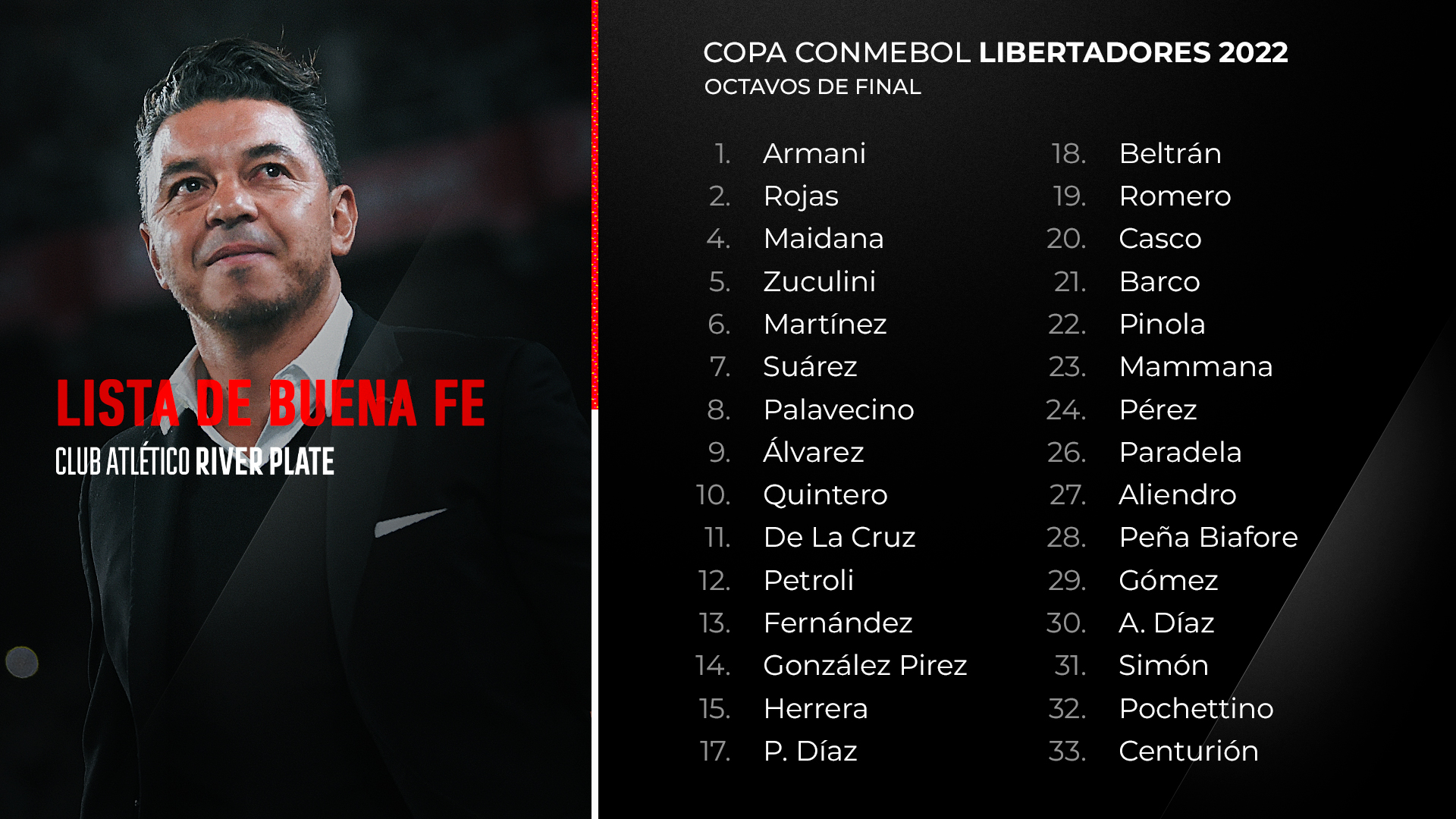 En River usará la camiseta número 27, que tenía Cristian Ferreira -cedido a préstamo a Newell’s- y Beltrán utilizará el dorsal número 18, con el que había sido inscripto el colombiano Flabian Londoño Bedoya, desafectado de la lista de la Copa por una fractura de clavícula.