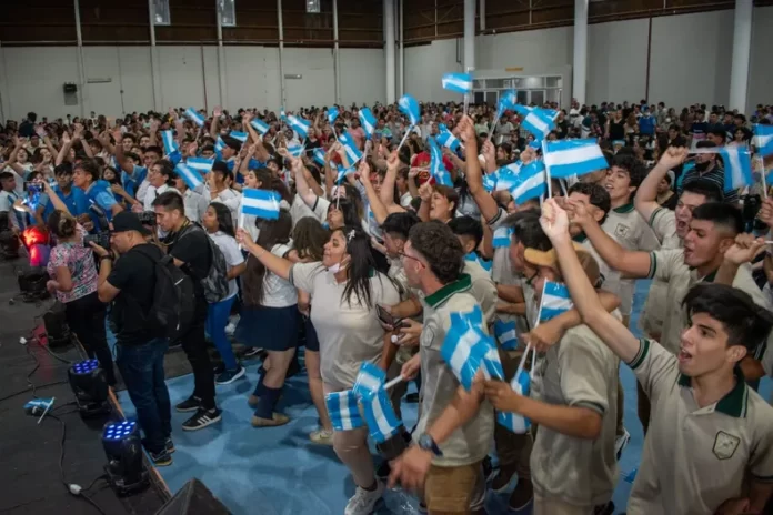 “Gracias a todos los alumnos y alumnas por estar presentes. Quiero contarles que debemos sentirnos orgullosos, porque estas computadoras que les entregamos son construidas acá, en El Pantanillo, que tiene a la única fábrica del norte argentino”, arrancó su discurso el gobernador Raúl Jalil.