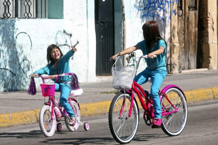 Un par de niñas andan en bicicletaUn par de niñas andan en bicicleta
