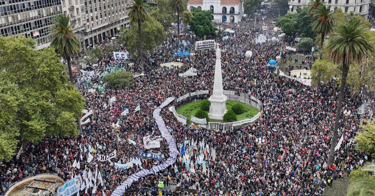 “No queremos neoliberalismo. Queremos, como soñaron los y las 30 mil, que el pueblo vuelva a ser feliz”, reclamaron los organismos de derechos humanos en el documento leído desde el escenario montado frente a la Casa Rosada al cierre de la jornada. Allí apuntaron a los “responsables económicos, grupos empresariales y militares, que contaron con el apoyo eclesiástico y de la corporación judicial que, hoy como ayer, representa los intereses de las clases poderosas”. Horas antes, en ese mismo escenario, las organizaciones de izquierda reunidas en el Encuentro Memoria, Verdad y Justicia también habían leído un comunicado que vinculaba pasado y presente. De manera explícita su convocatoria sumó las consignas “contra el pacto con el FMI, independiente del gobierno nacional y sus peleas internas”.