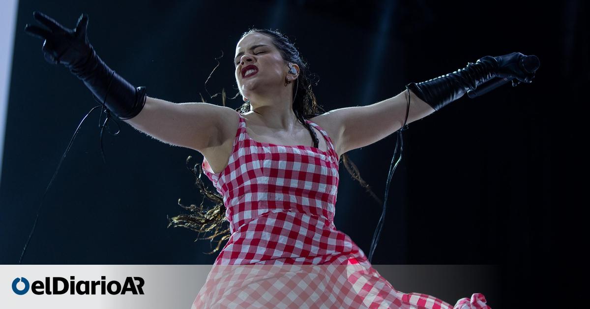 La cantante Rosalía también se suma a esta tendencia como se pudo ver en el escenario del Parque Bicentenario de Ciudad de México donde lució un vestido largo de Acne Studios con cuadros en blanco y rojo, inspirada en la estética de los años 50: tirantes anchos, escote recto, cuerpo entallado y falda amplia.