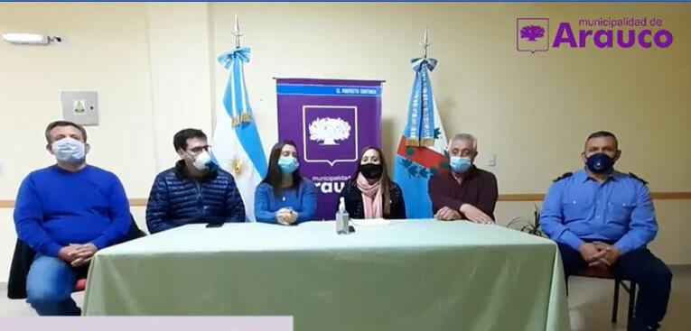 La intendenta Virginia López junto a la vicegobernadora Florencia López, los ministros de Gobierno Juan Luna y el de Salud, Juan Carlos Vergara y el comisario Raúl Guajardo, informaron la situación actual de Arauco, y los trabajos que se extremaron en las últimas horas a raíz del fallecimiento de una mujer por covid-19.