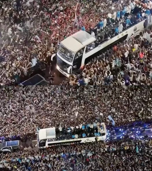 El vehículo se trasladó lentamente alrededor de una marea humana que entonó varias canciones. En el piso superior del micro, los jugadores no pudieron ocultar la alegría por la inmensa cantidad de gente que se congregó allí para recibirlos.