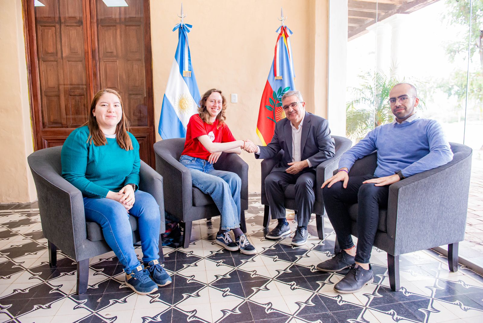 En el encuentro, el Gobernador se reunió con los delegados catamarqueños de la ONG YFU, Celeste Arias y Pablo Blamey, además de Julia Horn, una pasante proveniente de Alemania, que se encuentra disfrutando y conociendo por estos días las tierras catamarqueñas. Allí, compartieron diferentes experiencias y metodologías de trabajo.