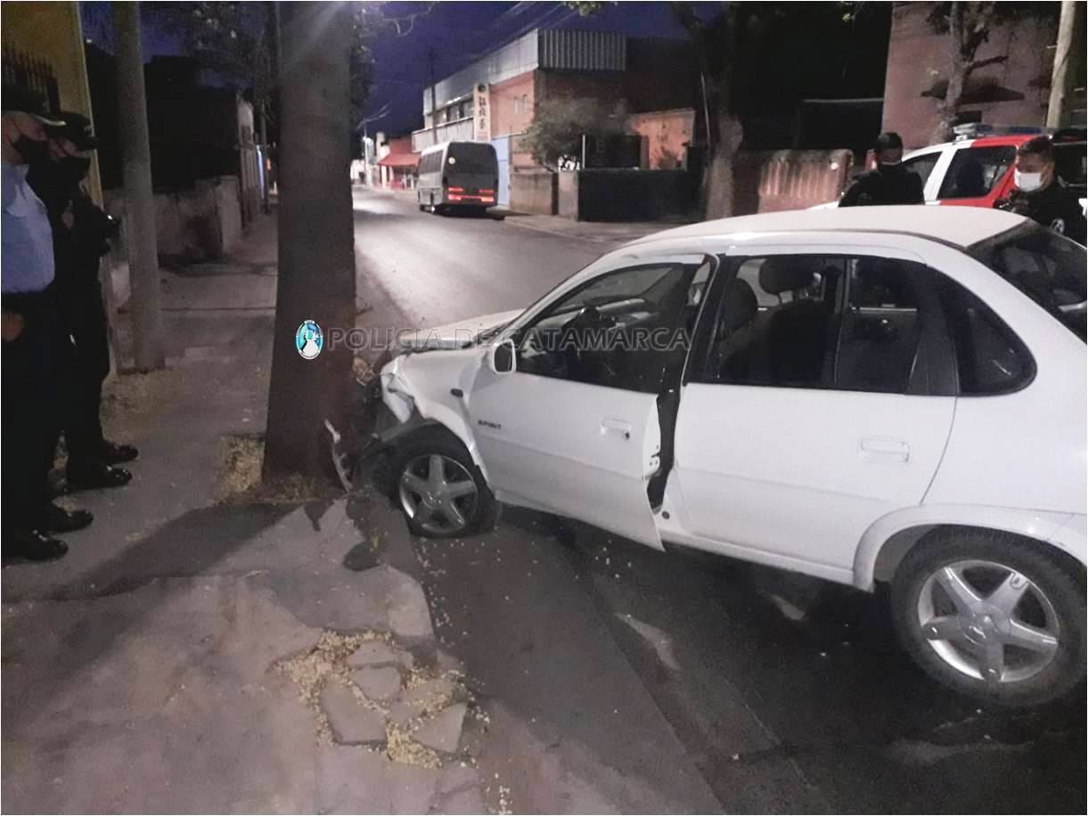 A las 05:15 de la madrugada de hoy, se registró un siniestro vial en la calle 9 de Julio al 900, protagonizado por un automóvil Chevrolet Corsa Classic, dominio LYY-021, de color blanco, conducido por Diego Ureña (34), acompañado por Johana Gabriela Abregú (26) y Cinthia Daiana Tiralli García (30), y por causas que se tratan de establecer perdió el control del rodado y chocó contra un árbol.