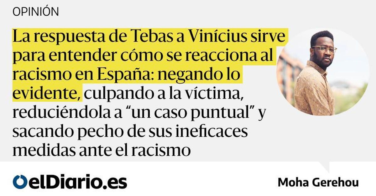 El racismo en España es un hecho, como lo son el machismo, la homofobia o el clasismo. No debería ni ser un debate, pero la respuesta de Tebas a Vinícius Jr tras lo vivido en Mestalla sirve para entender cómo se reacciona al racismo en España: negando la evidencia, culpando a la víctima, desdeñando la vivencia, reduciéndola a “un caso extremadamente puntual” y sacando pecho de sus ineficaces medidas ante el racismo.
