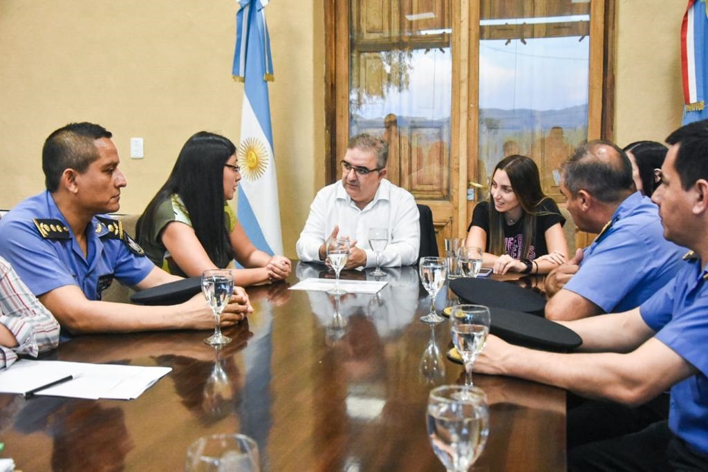 Del encuentro también participó el ministro de Gobierno, Justicia y Derechos Humanos, Juan Cruz Miranda; la ministra de Economía, Alejandra Nazareno, y otros integrantes de la cúpula mayor de la Policía de la provincia.