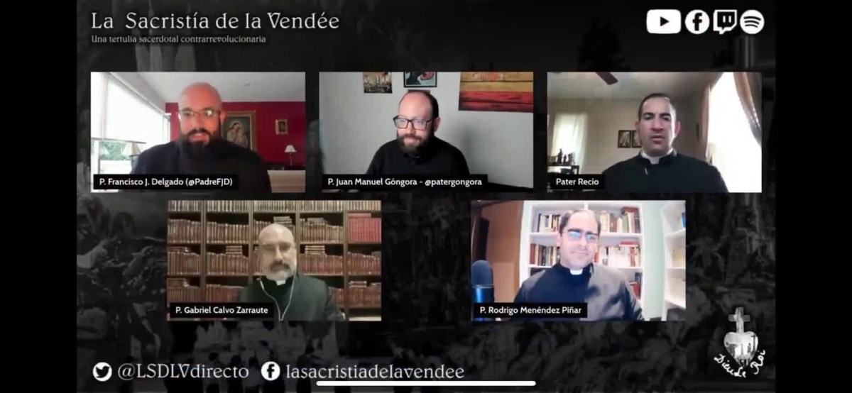 “Rezo mucho por el Papa, para que pueda ir al cielo cuanto antes”, expresó Gabriel Calvo Zarraute, sacerdote de la Archidiócesis de Toledo. La frase, lejos de generar indignación entre los presentes, fue tomada a chiste y comenzaron a reírse. Según trascendió, todos participaban del programa La Sacristía de la Vendée, una “tertulia sacerdotal contrarrevolucionaria”.